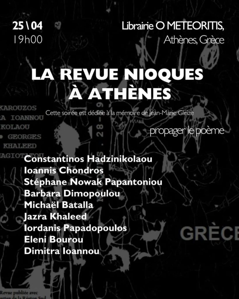 Bienvenue à la librairie Le Météorite pour une rencontre-lecture autour de l’expérience collective de traduction du numéro bilingue « Nioques 28-29, Grèce/Ελλάδα », qui rassemble des écritures de la poésie grecque contemporaine des années 1950 à aujourd’hui, dans une approche polyphonique cherchant à dialoguer avec le projet esthétique et politique de la revue.